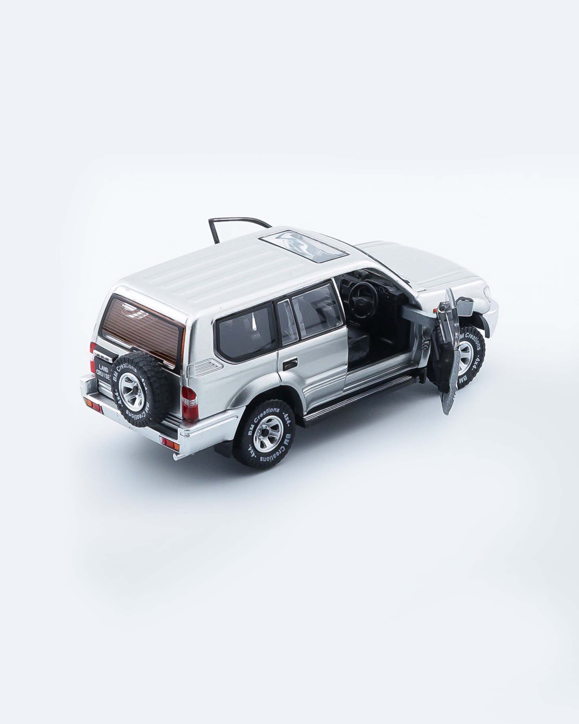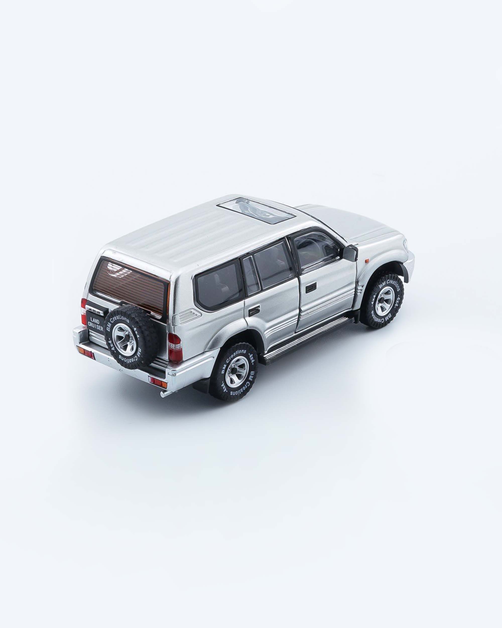 - Mô hình xe tỷ lệ 1:64 đến từ thương hiệu BMC Models, tái hiện mẫu SUV huyền thoại Toyota Land Cruiser Prado LC95 với màu bạc ánh kim sang trọng.