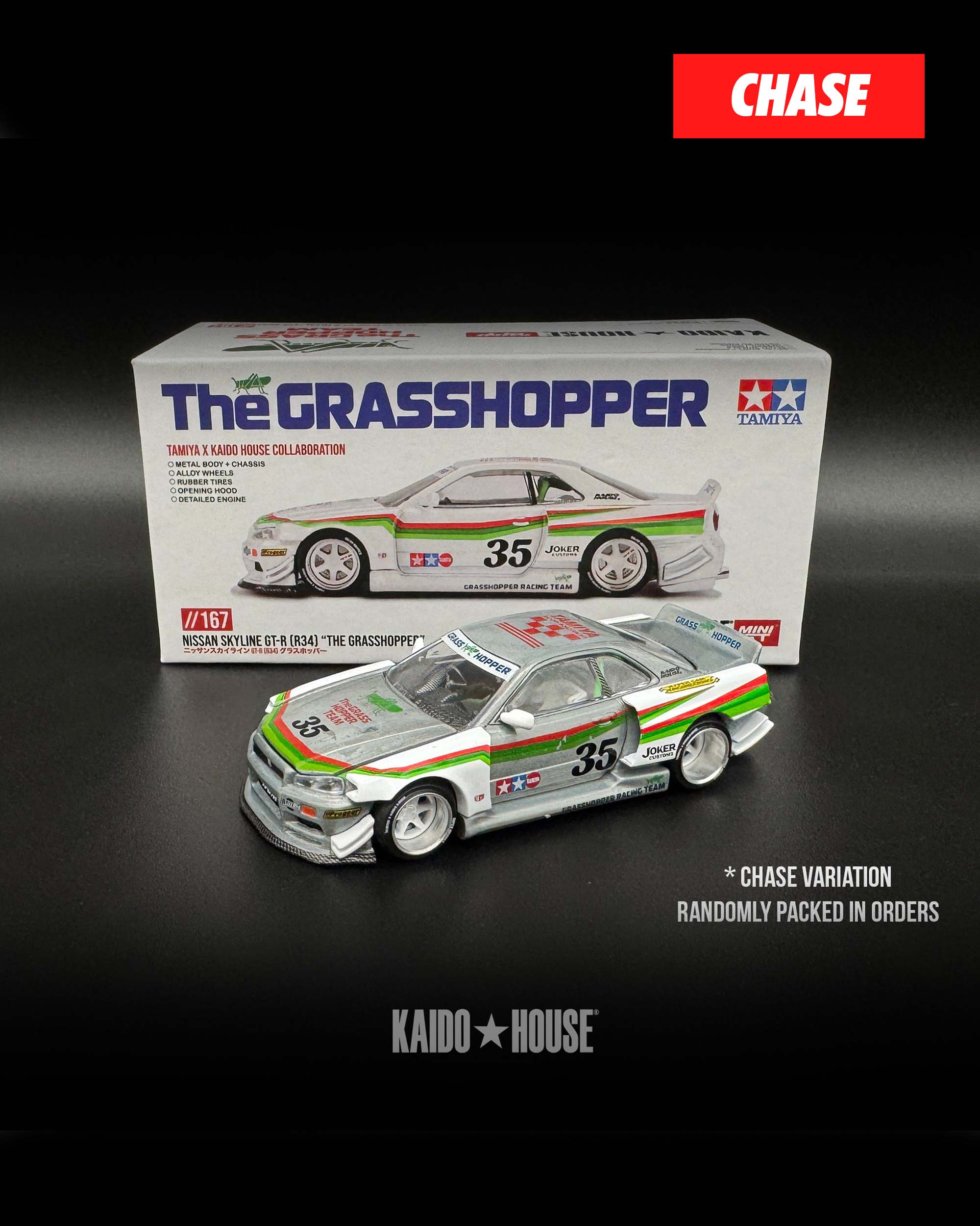 - Mô hình tỷ lệ 1:64 đến từ thương hiệu Kaido House, mã số KHMG167, là phiên bản hợp tác độc đáo giữa TAMIYA x KAIDO HOUSE, tái hiện chiếc Nissan Skyline GT-R (R34) "The GRASSHOPPER" V1 – lấy cảm hứng từ mẫu xe mô hình huyền thoại Tamiya Grasshopper.