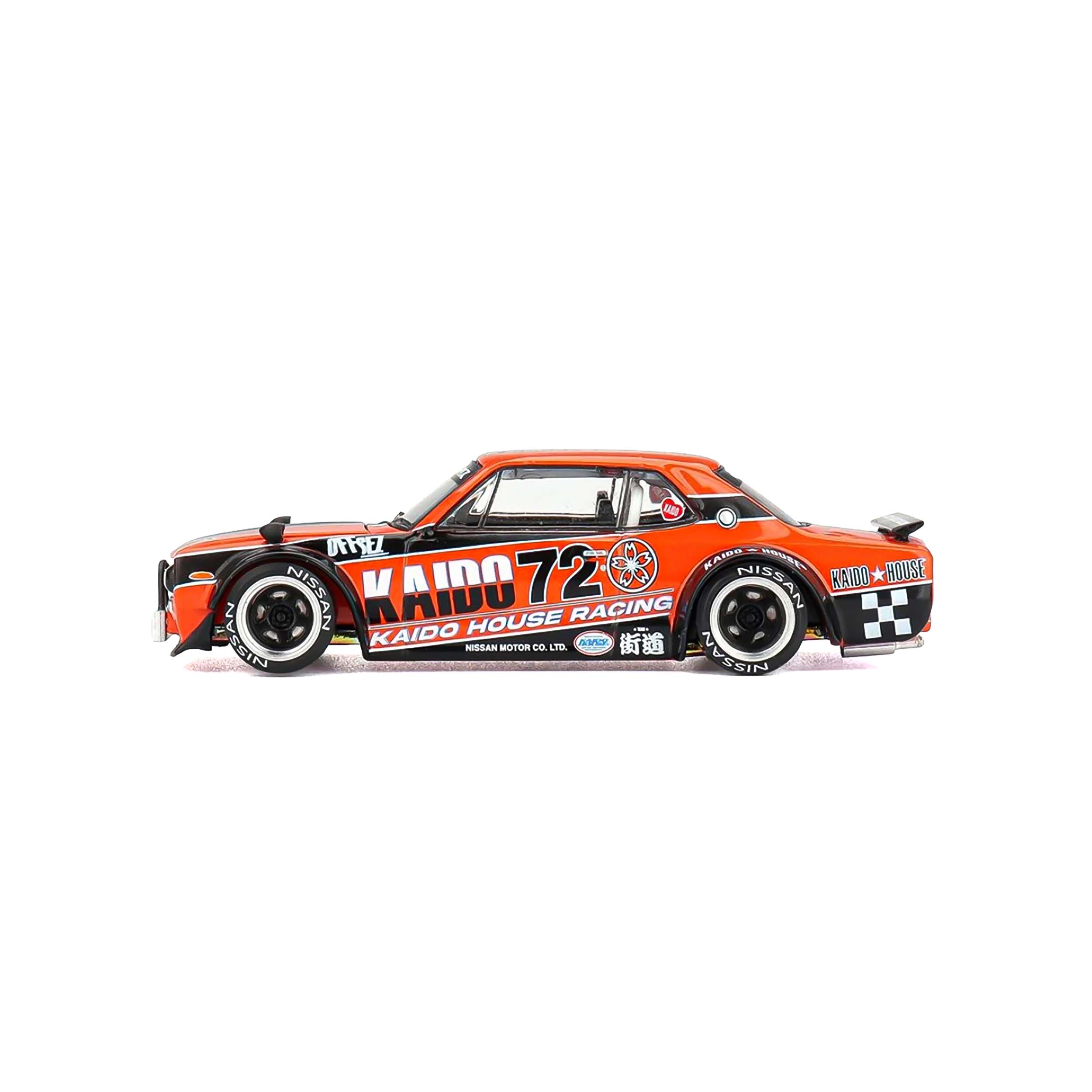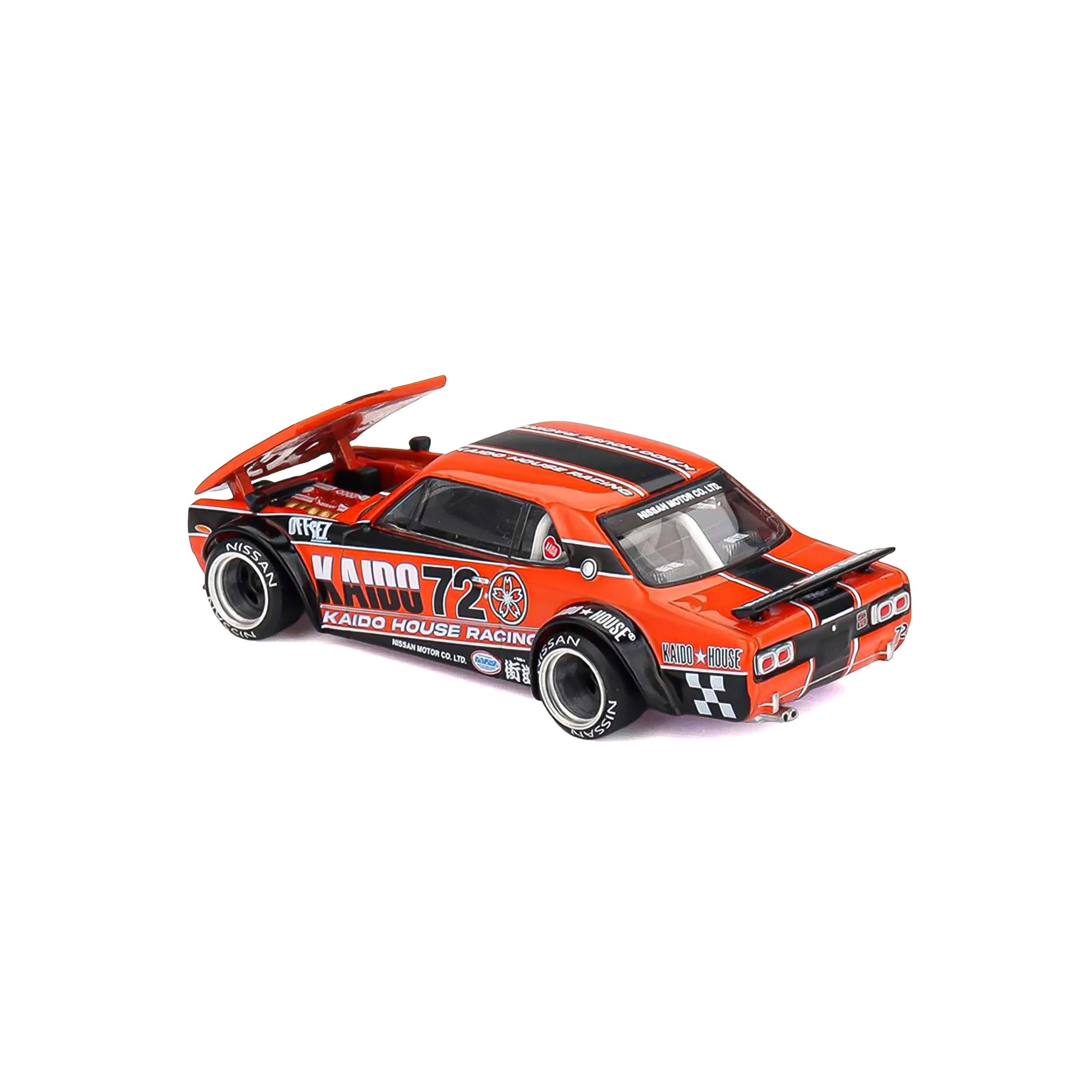 Nissan Skyline 2000GT-R (KPGC10) – “Hakosuka” – trong phong cách Kaido Racing V1 của Jun Imai. Thân xe bằng hợp kim kim loại (die-cast) kết hợp chi tiết nhựa tinh xảo, dài khoảng 7,5 cm, hoàn thiện cao cấp và sắc nét.