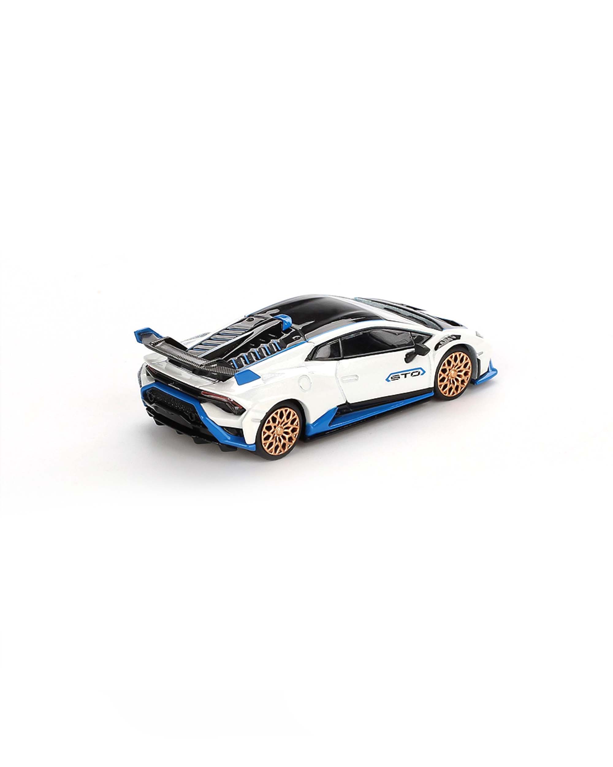 - Mô hình tỷ lệ 1:64 từ thương hiệu Mini GT, mã số MGT00788, tái hiện chiếc Lamborghini Huracán STO trong phối màu trắng ngọc Bianco Asopo – sắc sảo, đậm chất xe đua đường phố.