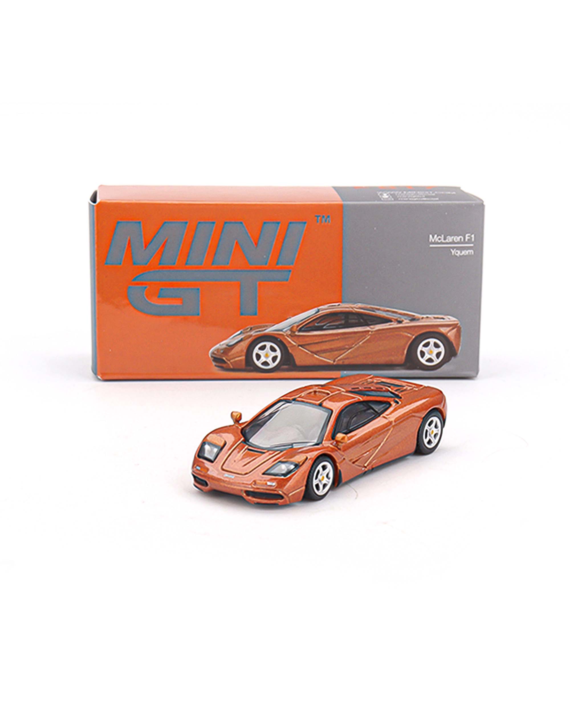 Hộp giấy: Thiết kế dạng hộp kín, in hình xe McLaren F1 Yquem, logo Mini GT thông tin sản phẩm và số mã MGT00817