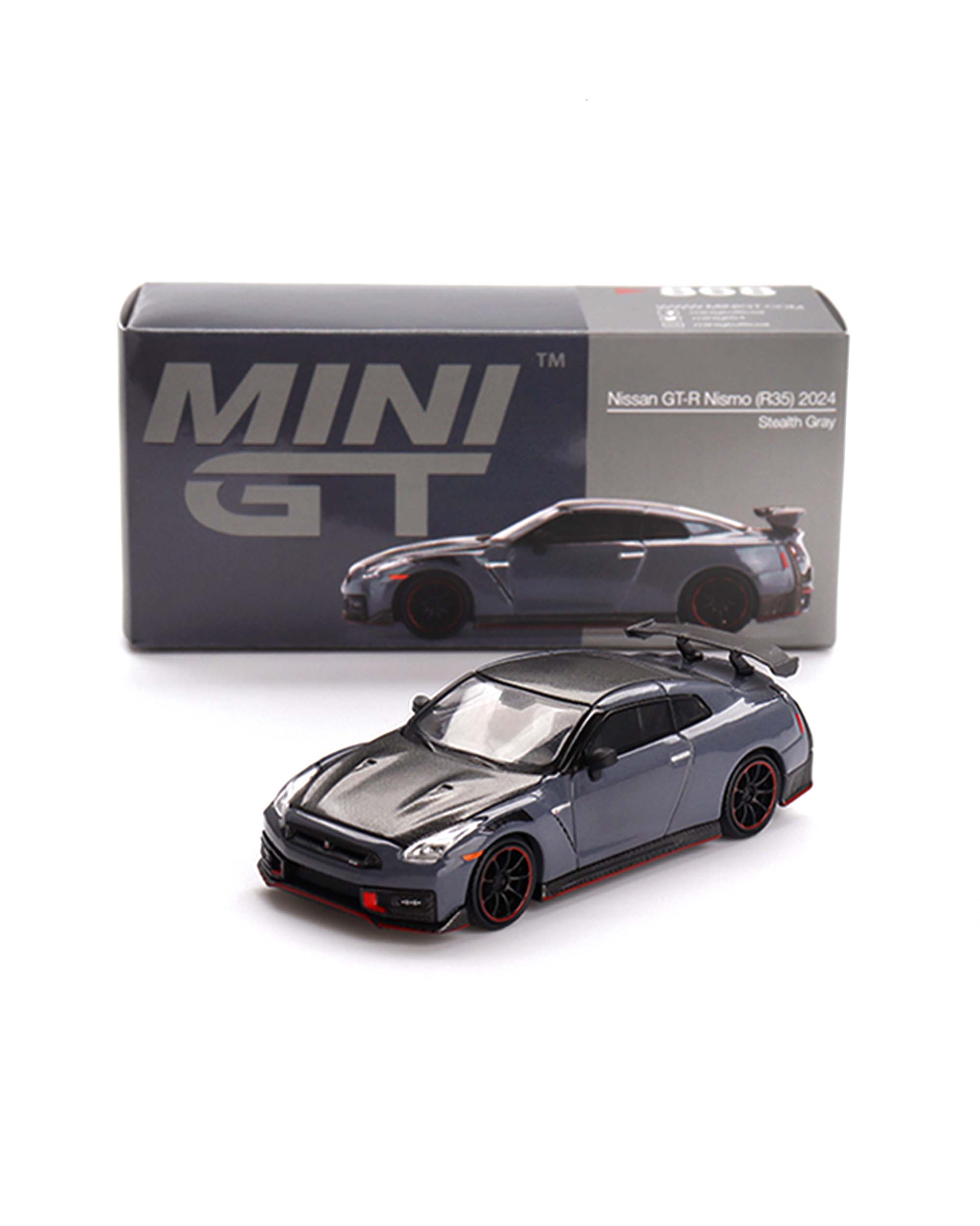 - Mô hình tỷ lệ 1:64 từ thương hiệu Mini GT, mã số MGT00868, tái hiện chiếc Nissan GT-R Nismo 2024 trong phối màu đặc biệt Stealth Gray – tối giản, mạnh mẽ và đầy khí chất chiến binh đường phố.