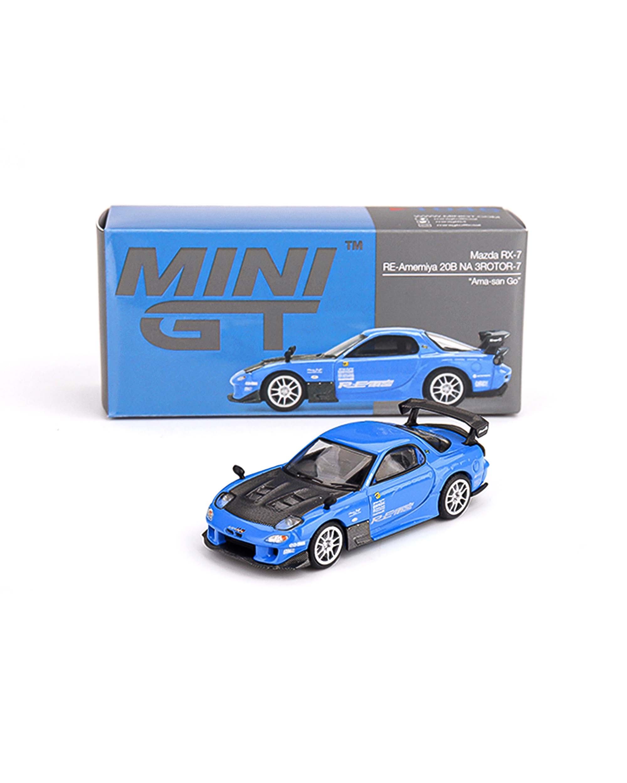 - Mô hình tỷ lệ 1:64 từ thương hiệu Mini GT, phiên bản BOX Version, mã số MGT01046, tái hiện chiếc Mazda RX-7 FD3S độ full-body cực chất bởi lò RE-Amemiya, với biệt danh “Ama-san Go” – độc đáo, hiếm gặp và đậm chất JDM.
