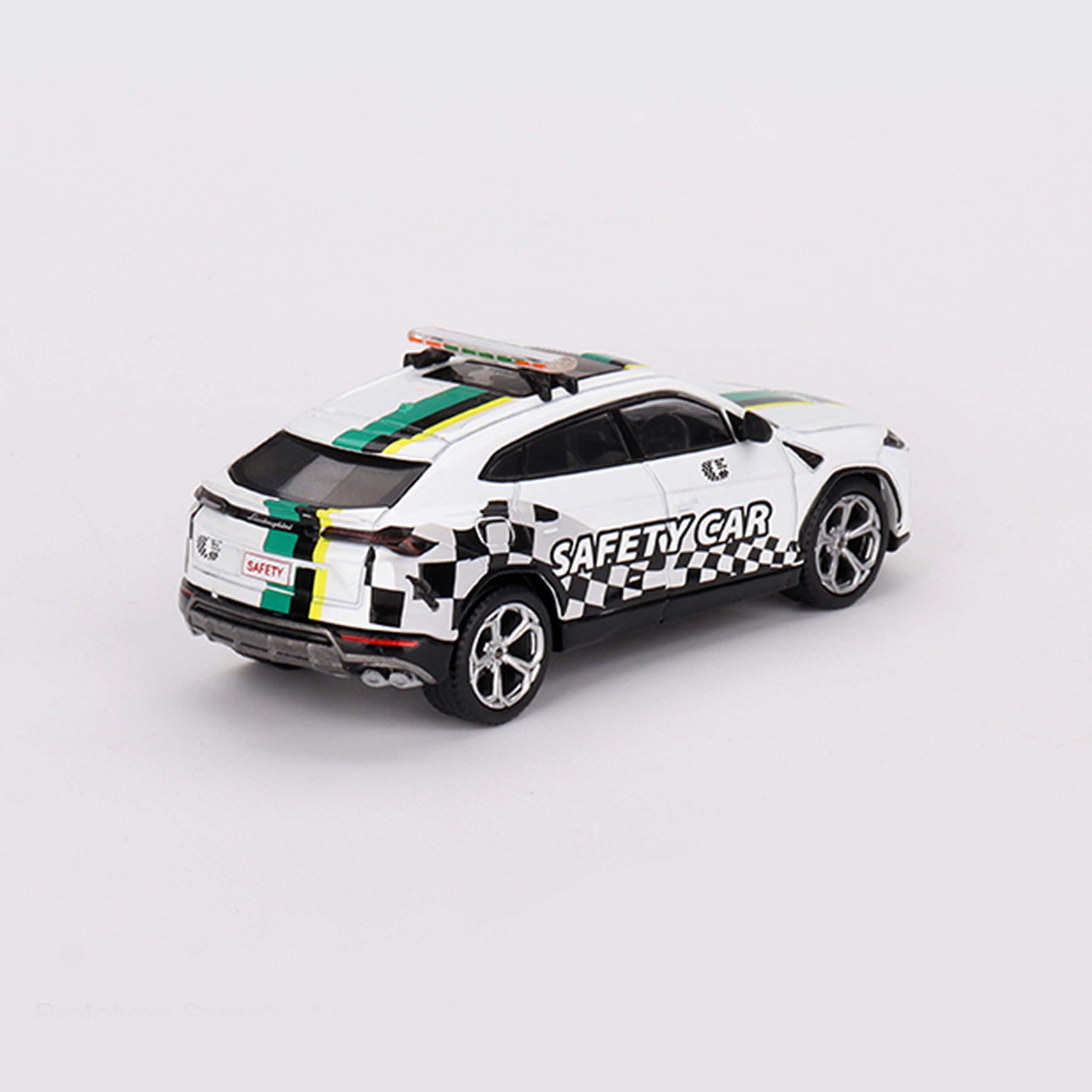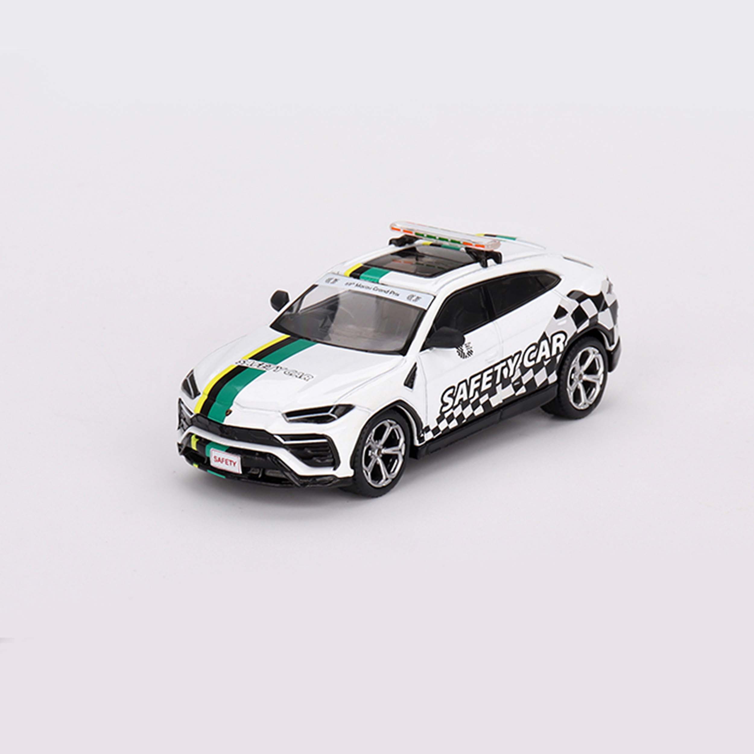 Mô hình xe tỉ lệ 1:64 do Mini GT sản xuất, tái hiện chiếc Lamborghini Urus 2022 Macau GP Official Safety Car, mẫu xe chính thức được sử dụng trong Giải đua Macau Grand Prix 2022. Thân xe được chế tác từ hợp kim kim loại (die-cast) kết hợp các chi tiết nhựa tinh xảo, mang lại cảm giác chắc tay, bền bỉ và sắc nét. Kích thước dài khoảng 7,5 cm, phù hợp để trưng bày hoặc sưu tầm.