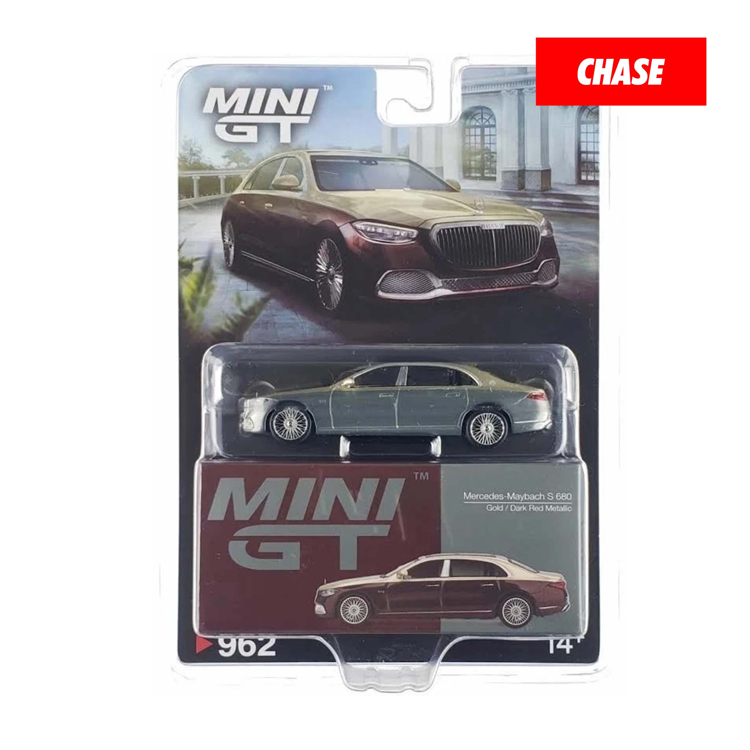 Mô hình xe tỉ lệ 1:64 do Mini GT sản xuất, thuộc phiên bản Card Version MGT00962, tái hiện chiếc Mercedes-Maybach S680 trong phối màu sang trọng Gold / Dark Red Metallic. Thân xe được chế tác từ hợp kim kim loại (die-cast) kết hợp các chi tiết nhựa tinh xảo, mang lại cảm giác cao cấp và độ hoàn thiện xuất sắc. Kích thước dài khoảng 7,5 cm, phù hợp để trưng bày hoặc sưu tầm.