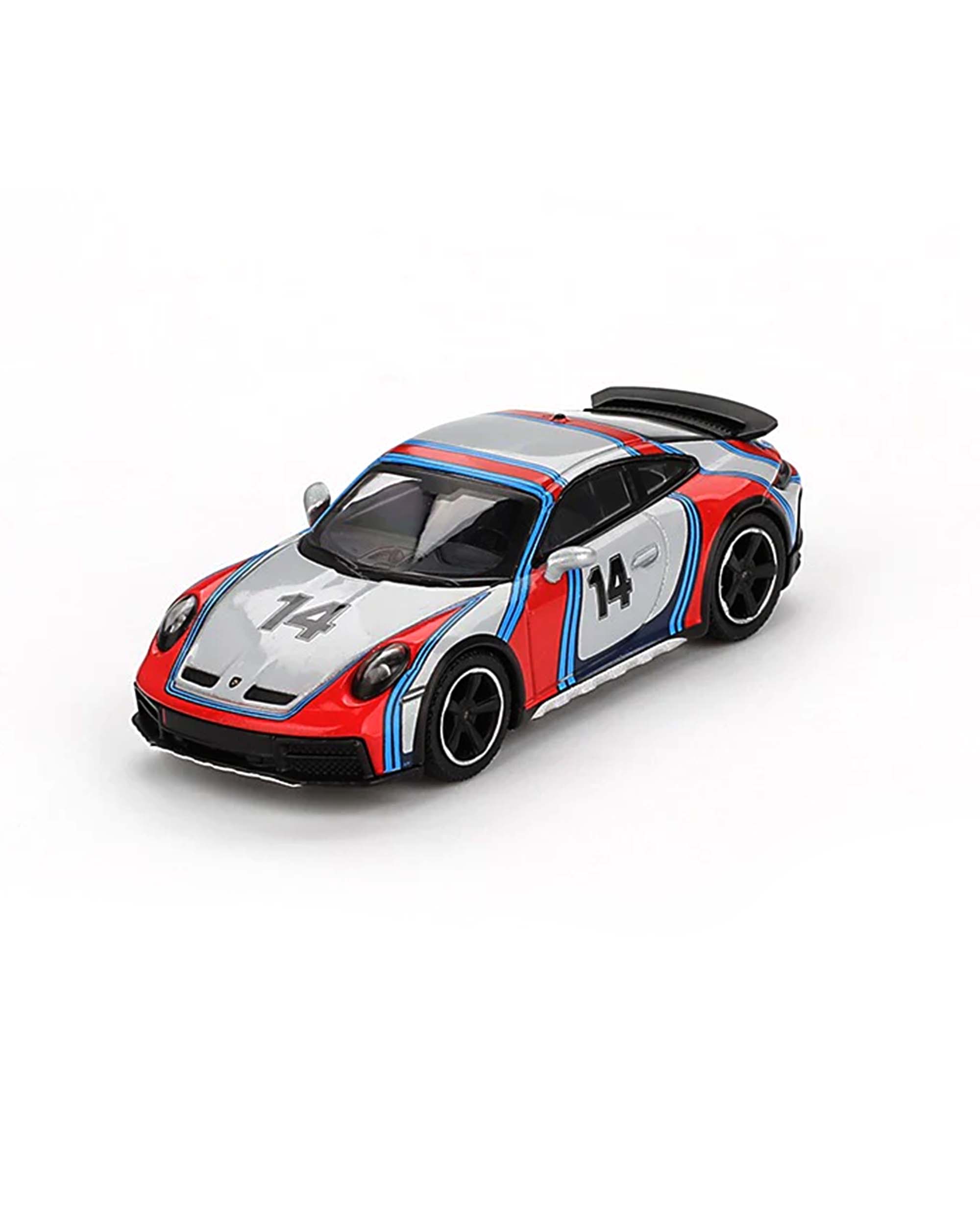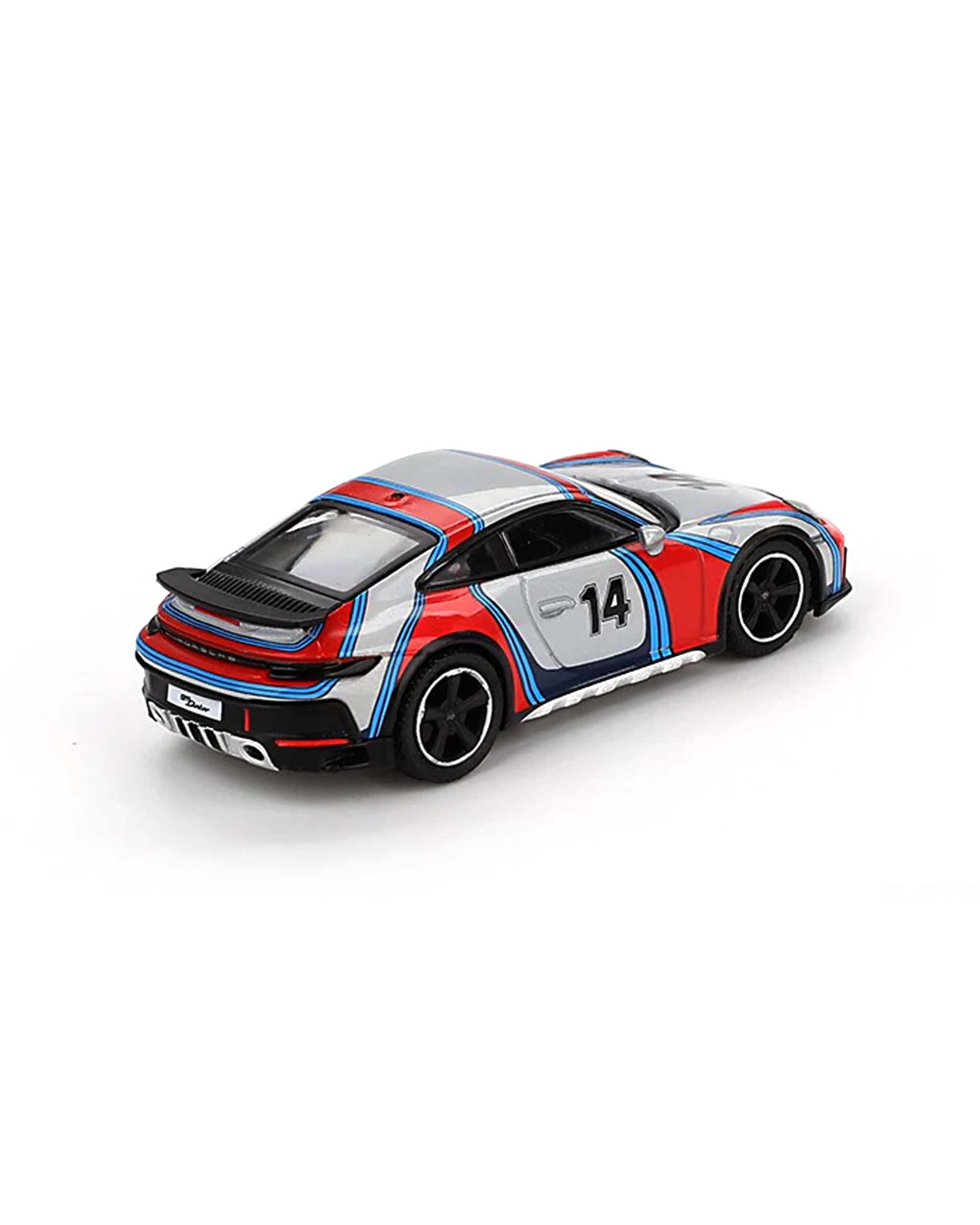 - Mô hình xe tỷ lệ 1:64 từ thương hiệu Mini GT, phiên bản CARD Version, mã số MGT00964, tái hiện chiếc Porsche 911 Dakar trong phối màu Ice Grey Metallic, mang phong cách Rally 1978 — một sự kết hợp độc đáo giữa hiệu năng off-road và di sản đua xe lẫy lừng của Porsche.