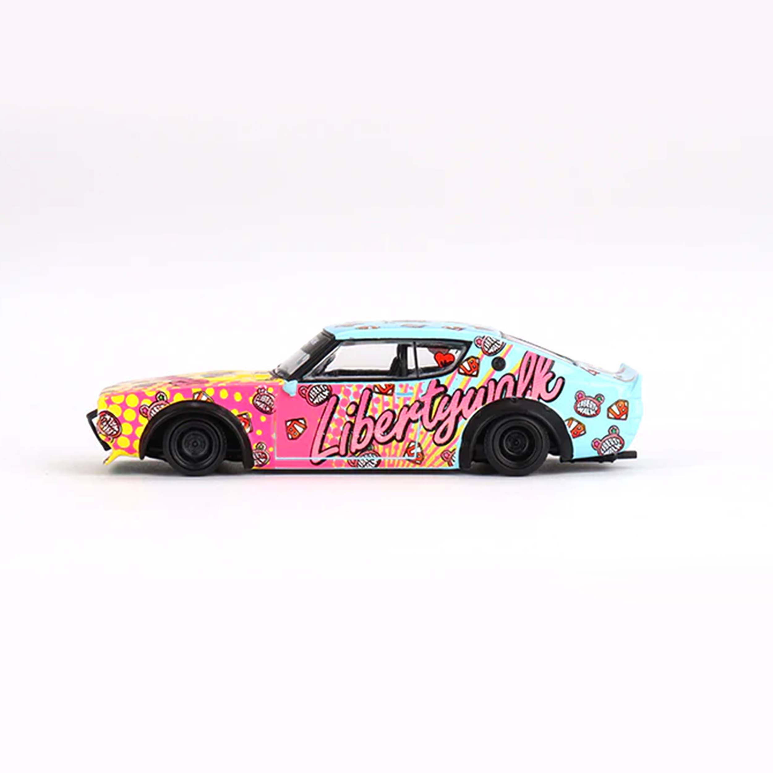 - Phiên bản Nissan Skyline Kenmeri “KUMA” gây ấn tượng với thân xe widebody cổ điển kết hợp họa tiết gấu KUMA đặc trưng của LBWK. Màu sơn nổi bật cùng chi tiết decal sắc nét, đi kèm bánh xe có thể xoay, lốp cao su thật, gầm xe mô phỏng chi tiết.