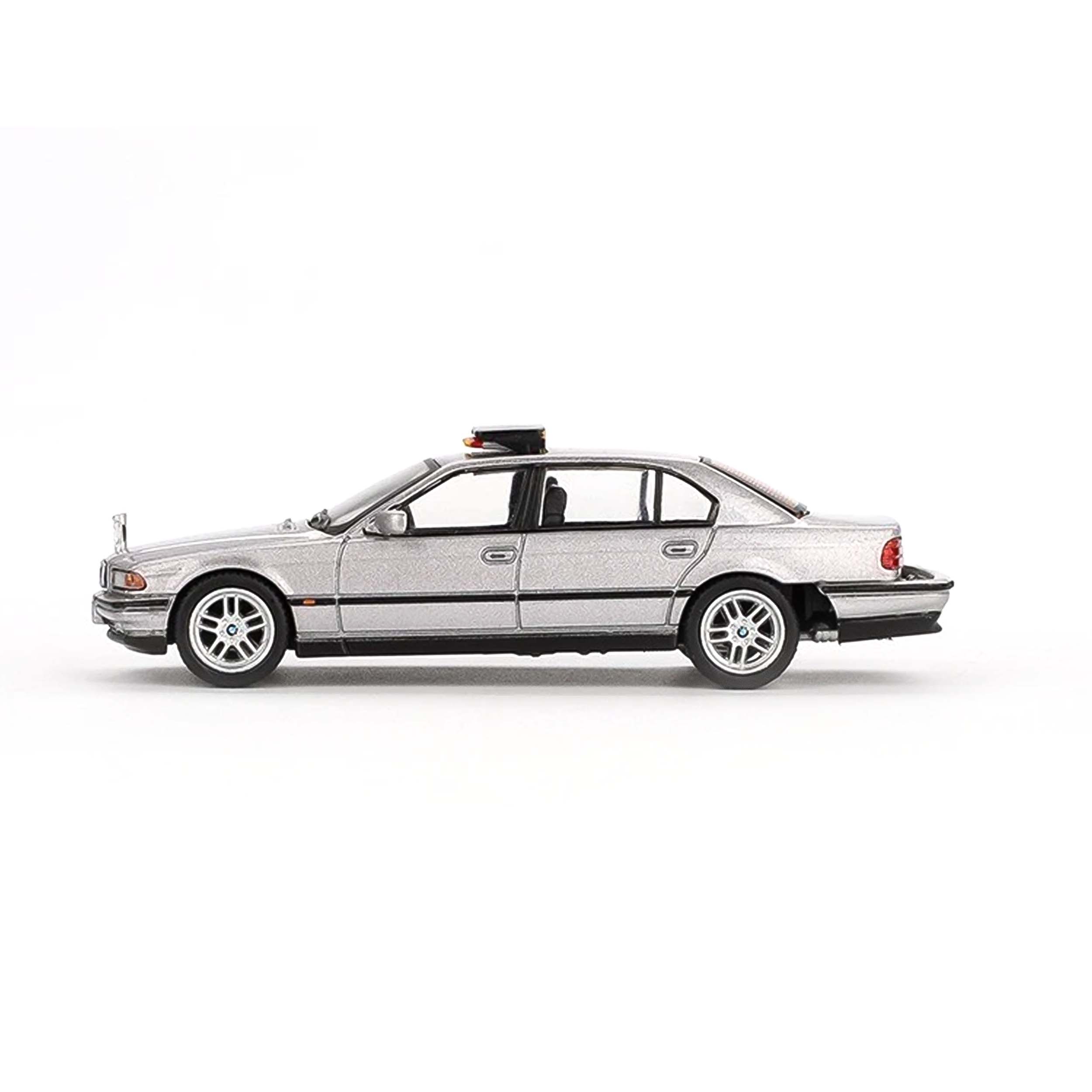 Mô hình xe tỉ lệ 1:64 do Mini GT sản xuất, mang mã MGT00902 (Card Version), tái hiện chiếc BMW 750iL trong phim “James Bond: Tomorrow Never Dies”.