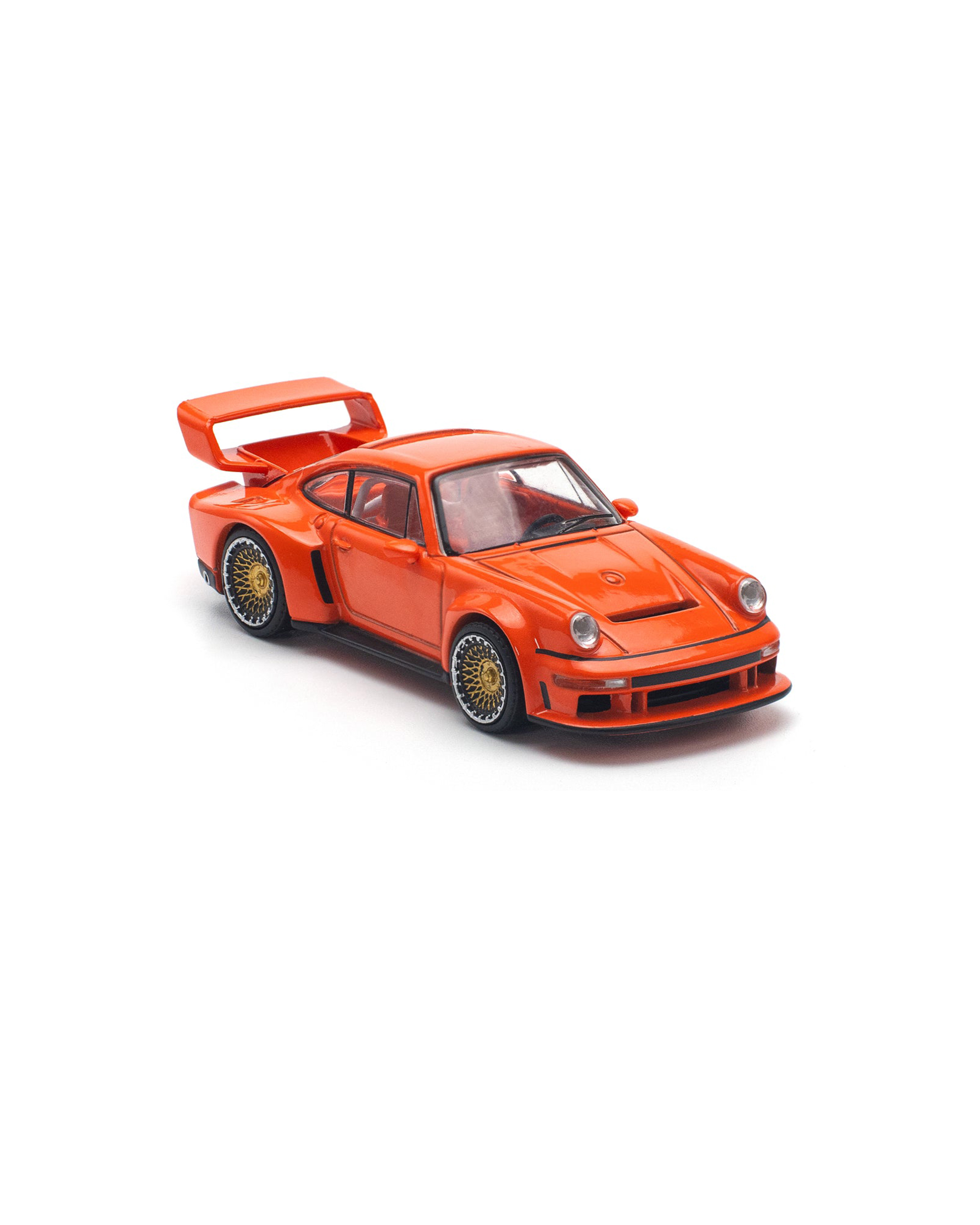 Mô hình xe tỉ lệ 1:64 do PopRace sản xuất, mã PR640131, tái hiện siêu phẩm Singer DLS Turbo Track Version – phiên bản đua đường hợp pháp dựa trên Porsche 911 (964) được Singer Vehicle Design chế tác thủ công.