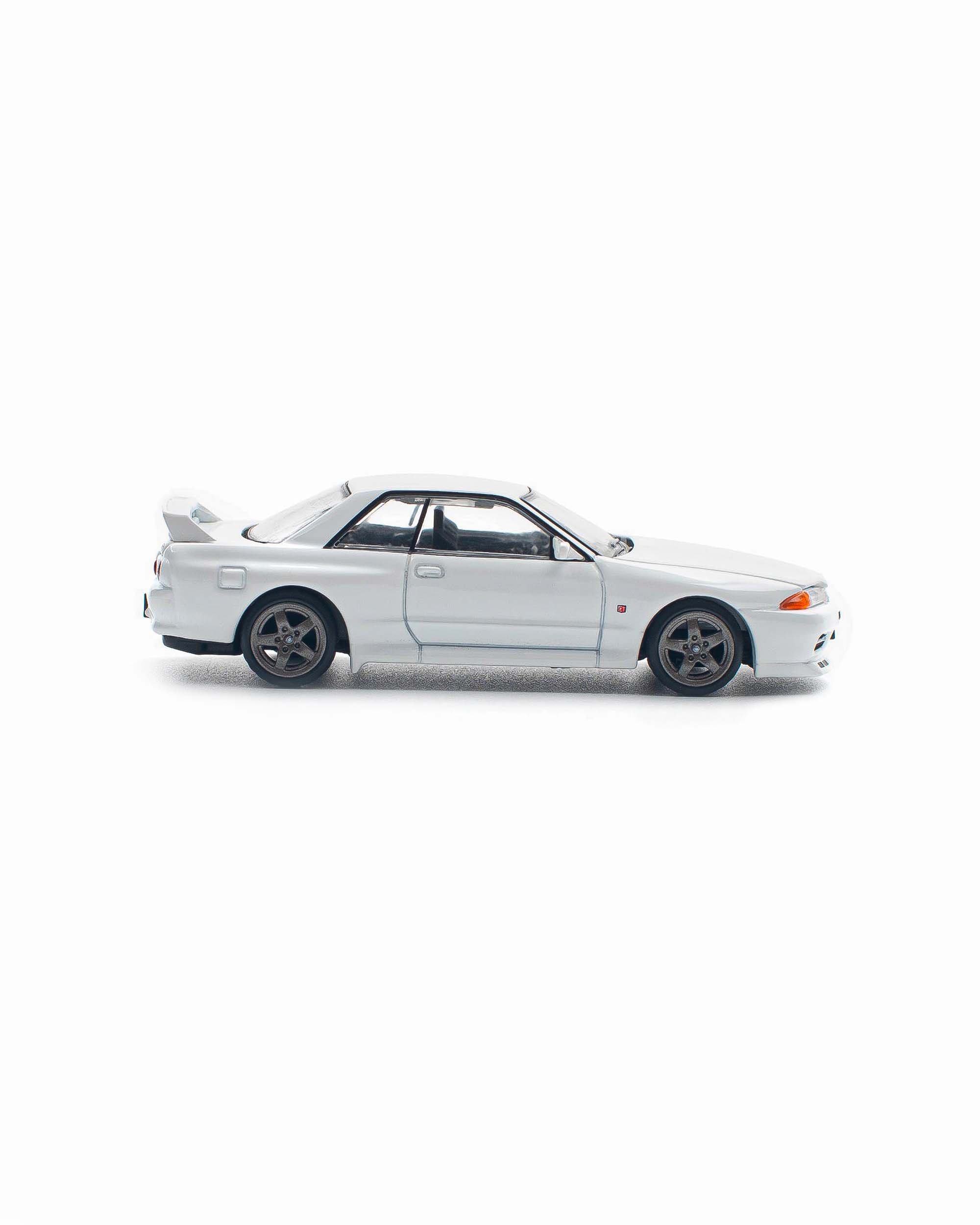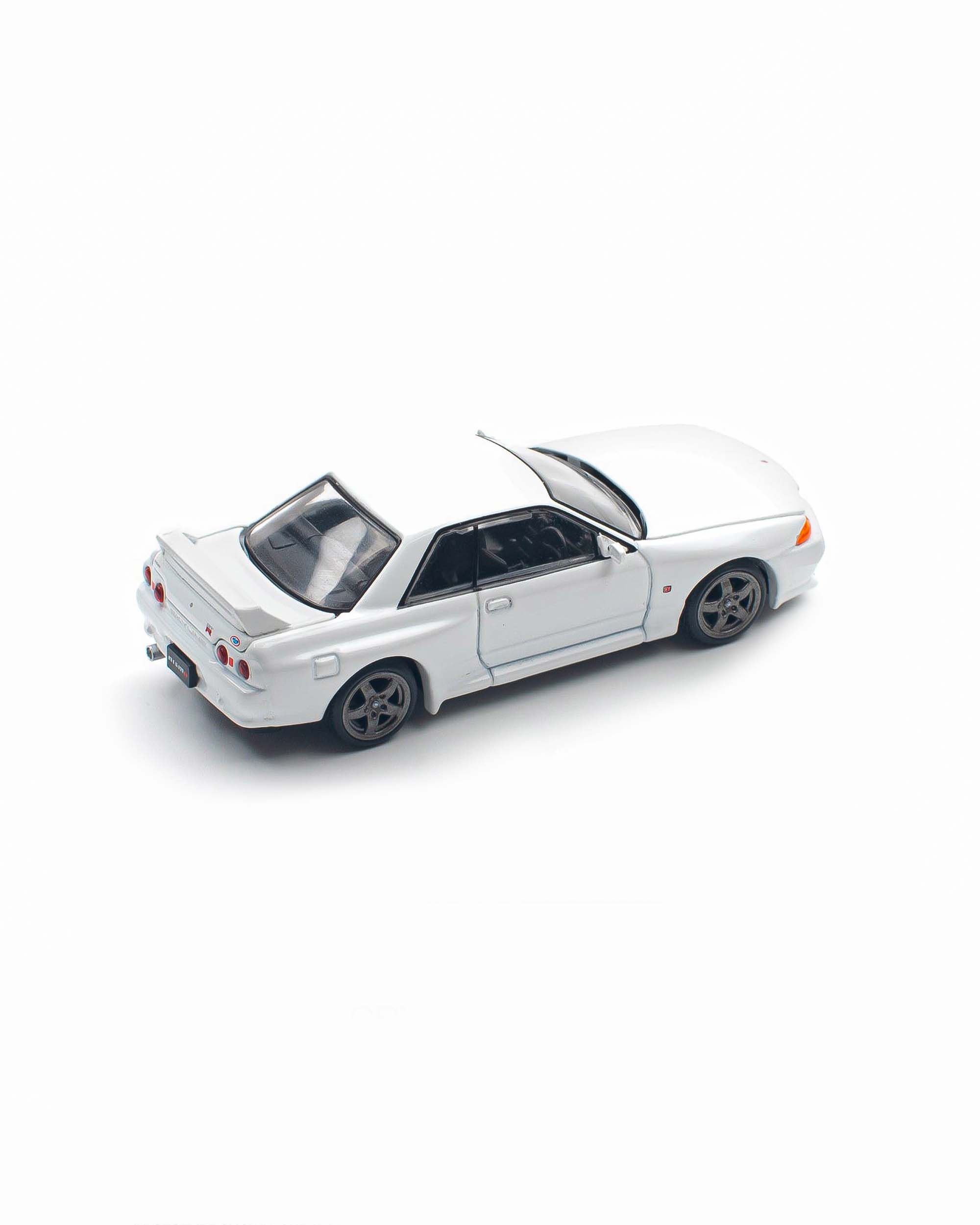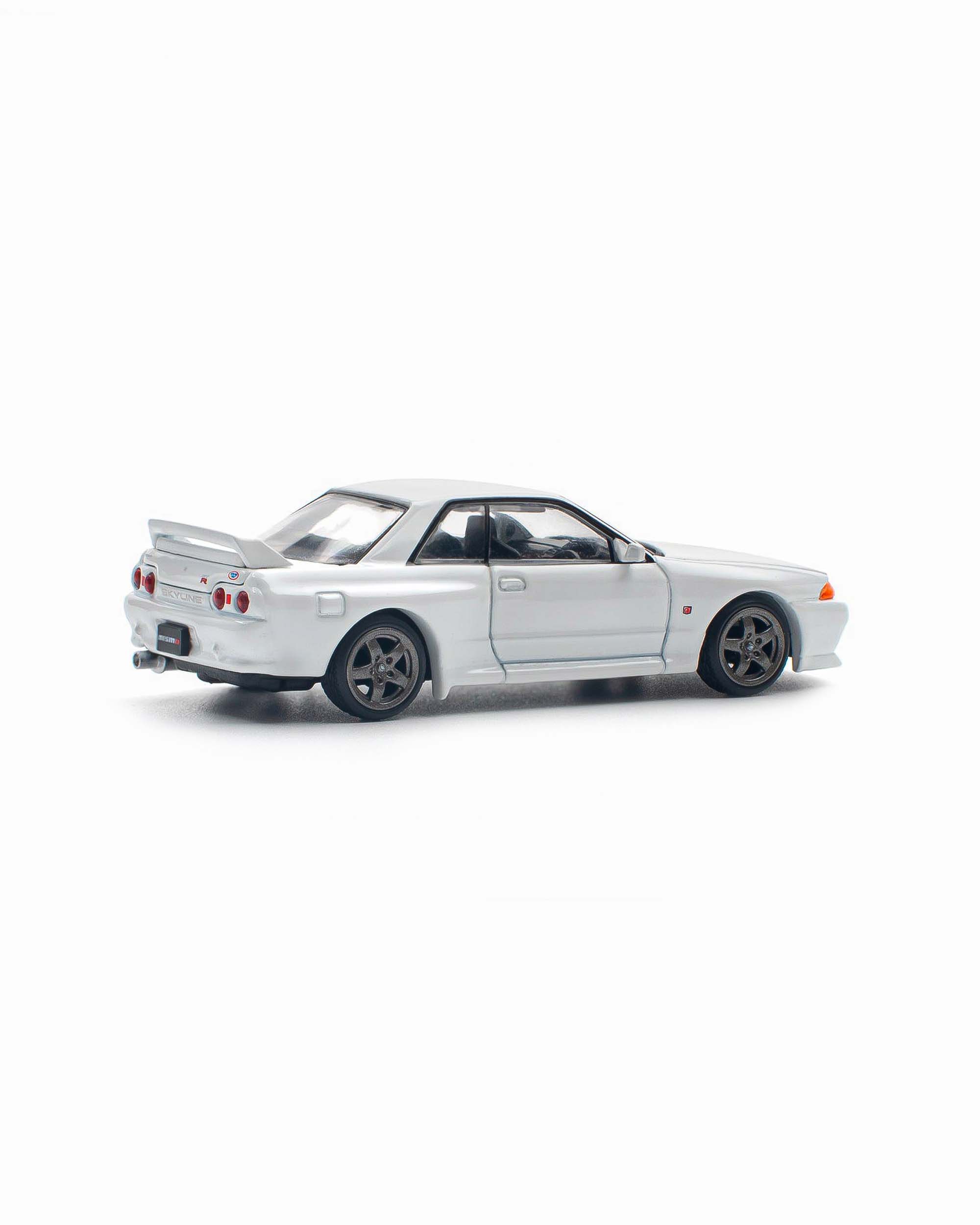 Phiên bản Nissan Skyline GT-R R32 màu Crystal White được PopRace chế tác tỉ mỉ ở tỉ lệ 1/64, nổi bật với khả năng mở nắp capo và cốp sau, lộ rõ chi tiết động cơ và khoang chứa đồ. Nước sơn trắng ngọc bóng đẹp, mâm xe thể thao và các đường nét sắc sảo, lý tưởng cho trưng bày và sưu tầm.