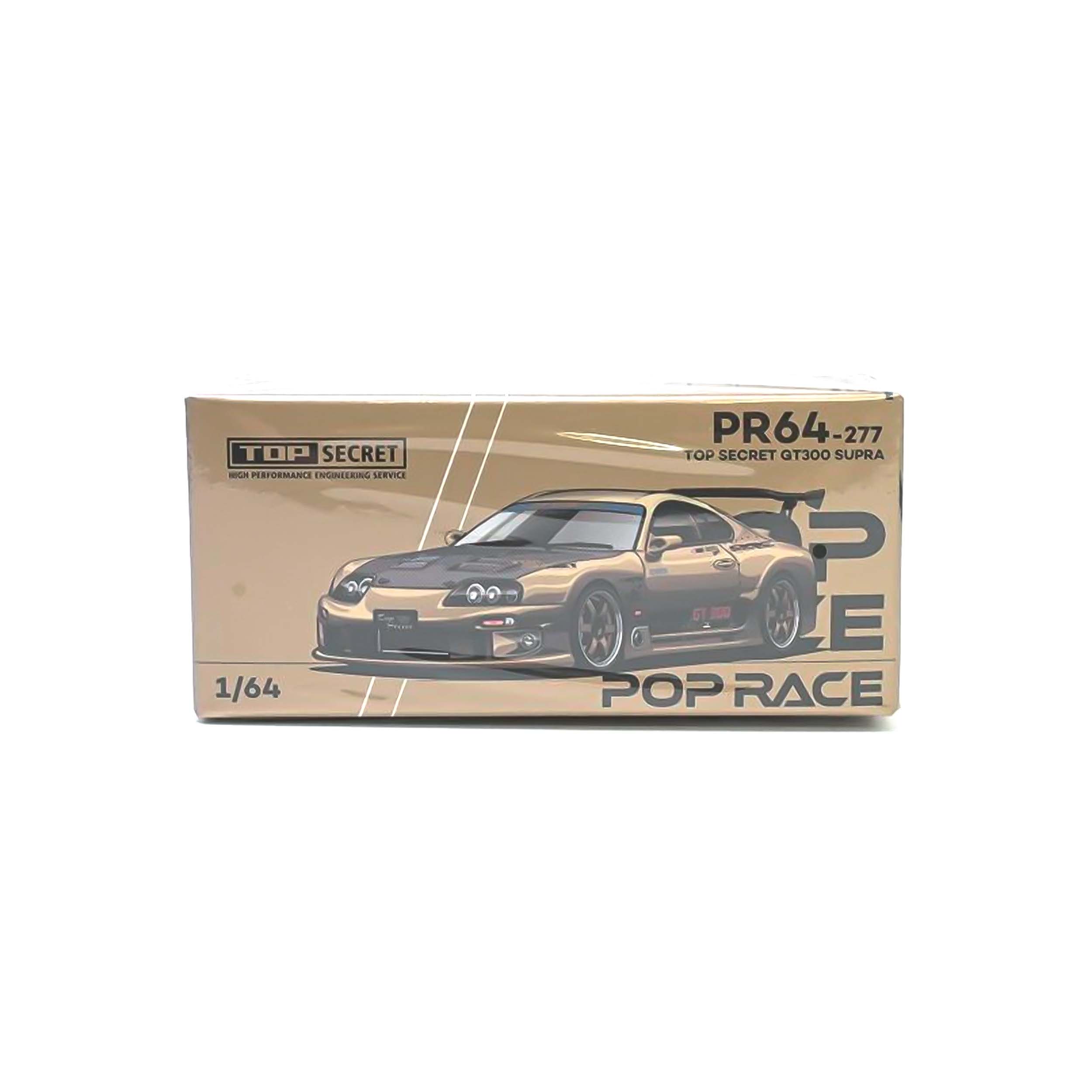 PopRace PR640277 TOP SECRET GT300 SUPRA Chrome Gold – tái hiện chiếc Toyota Supra GT300 Top Secret với phối màu Chrome Gold – mẫu độ cực kỳ nổi bật và hiếm trong giới die-cast.